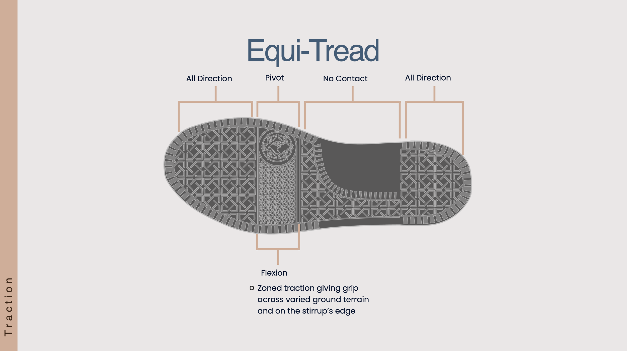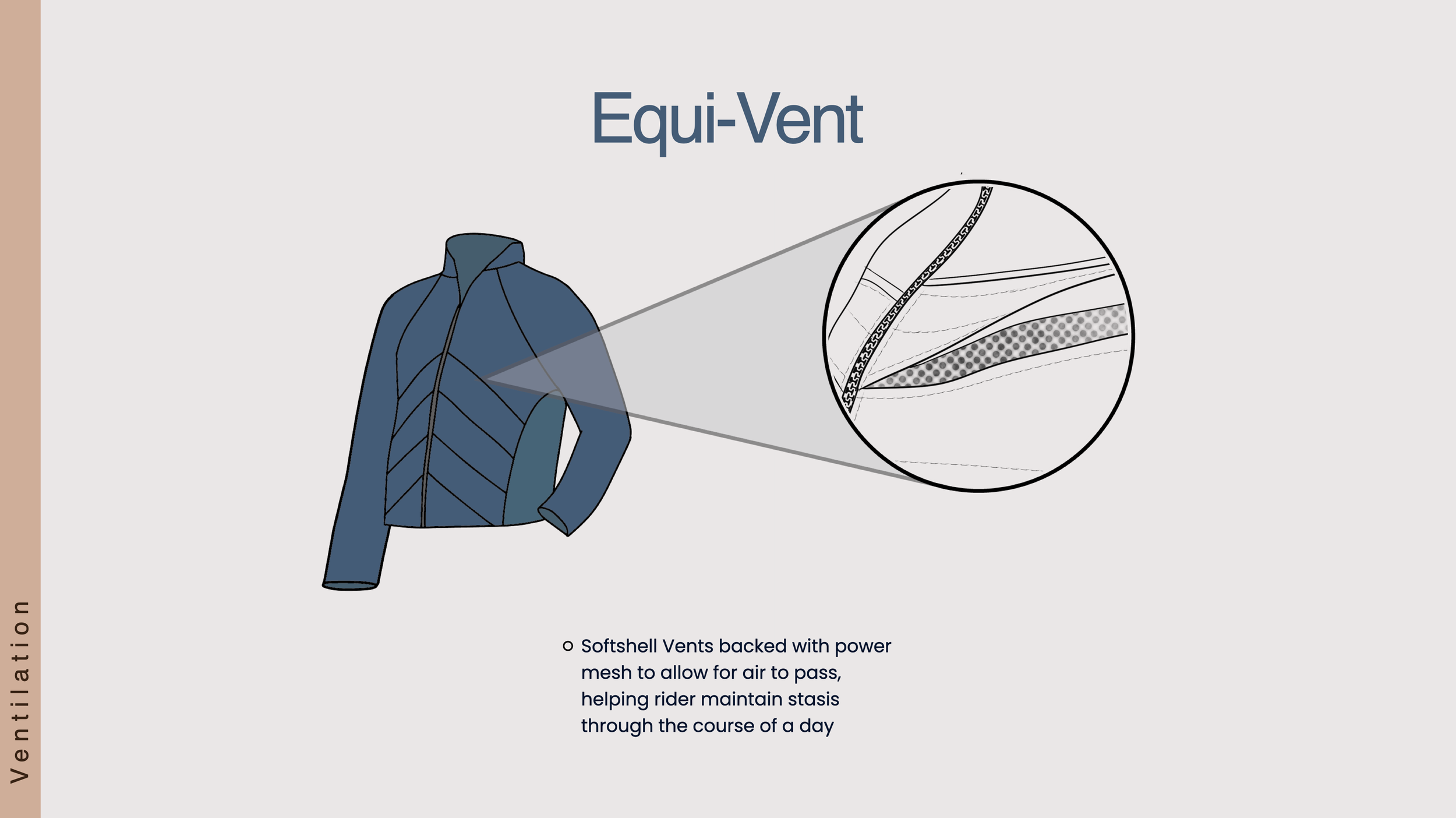 The Epona Sport system translates rider pain points into four targeted technologies: Equi-Span for zoned stretch, Equi-Vent for dynamic thermoregulation, Equi-Tread for ground and stirrup traction, and Equi-Seat for in-saddle grip.
