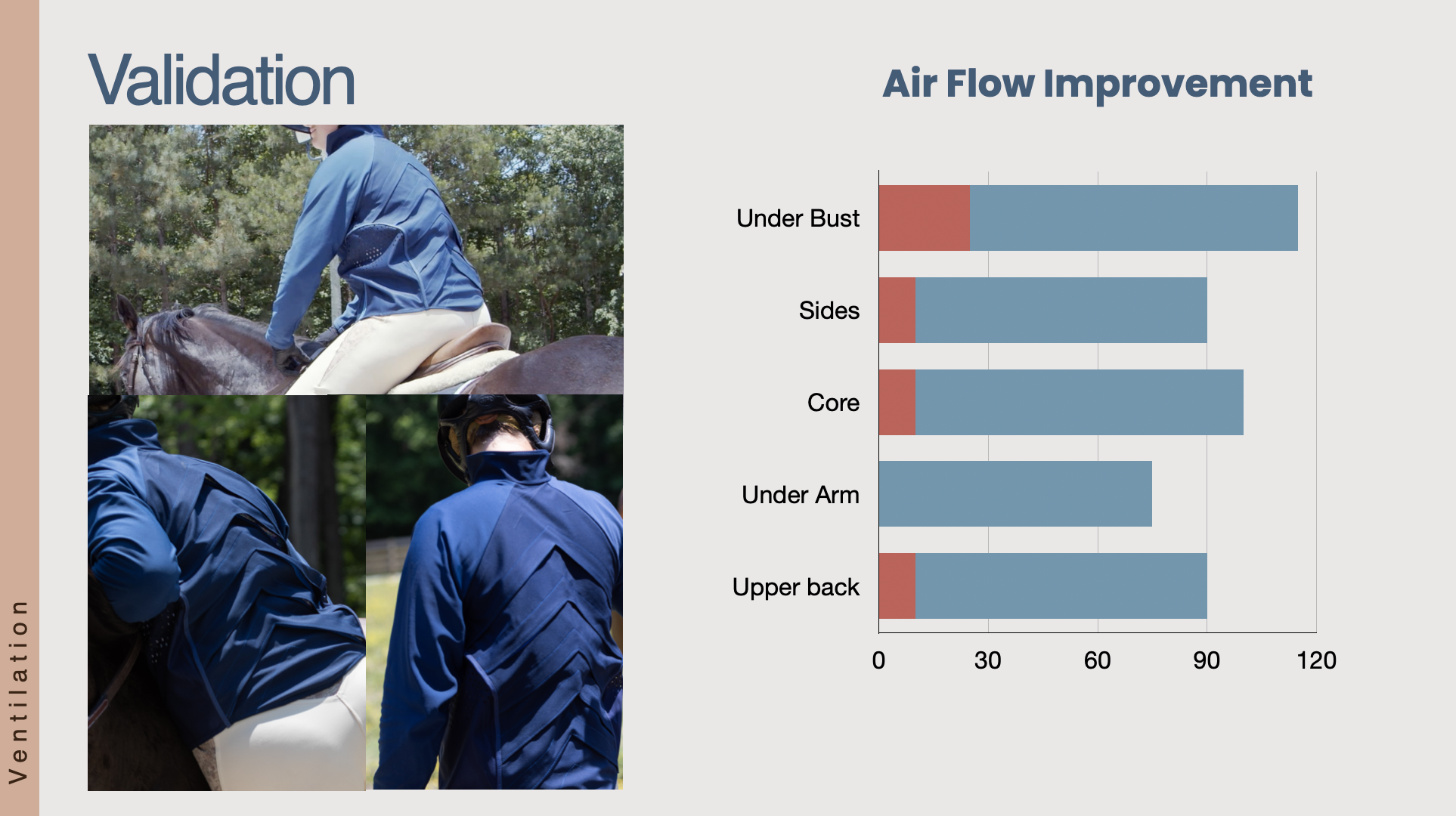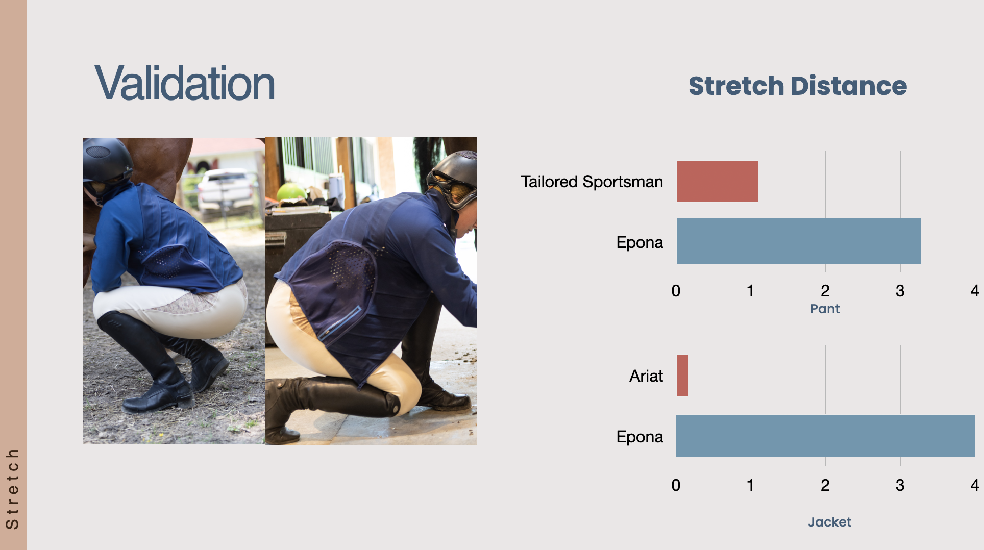 Validation: Field testing with professional riders demonstrated measurable gains in airflow, traction, and stretch, confirming that Epona outperforms leading equestrian brands in comfort and security.