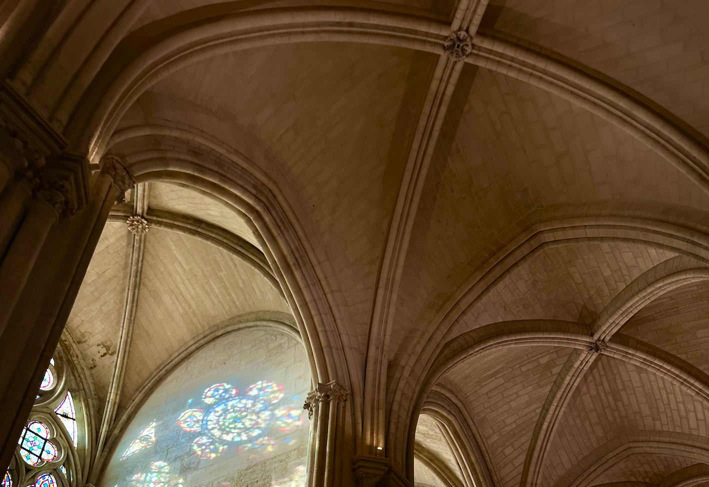 A couture exploration of faith and fashion, translating sacred symbols and church architecture into bold color blocking, handwork, and glittering surface texture